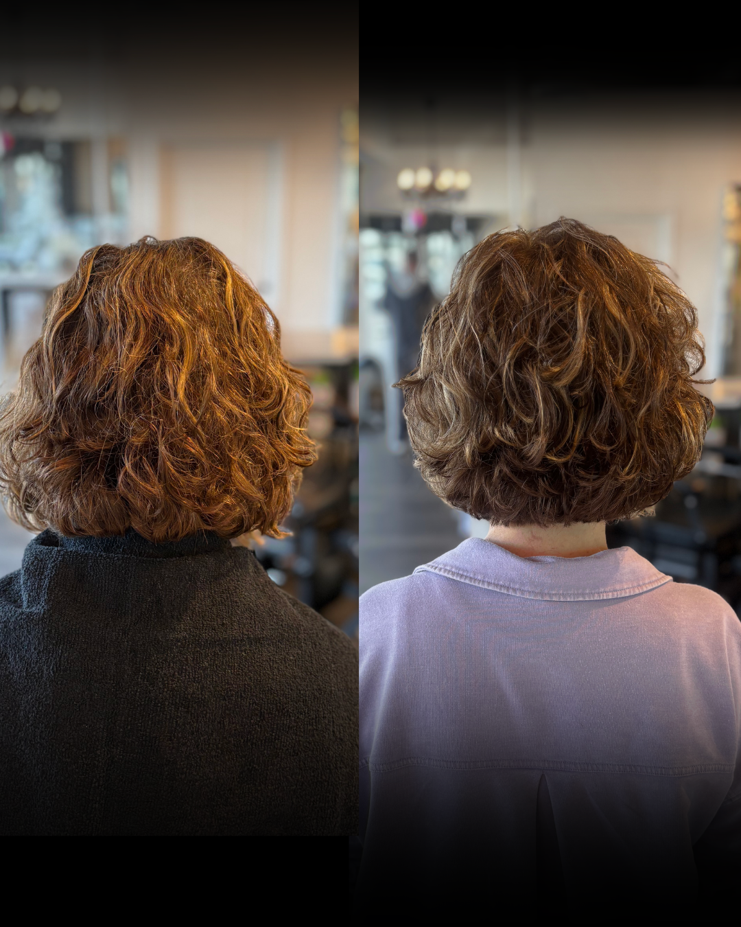 Rich, dimensional color with a cut that works with her natural curl pattern. Total look.